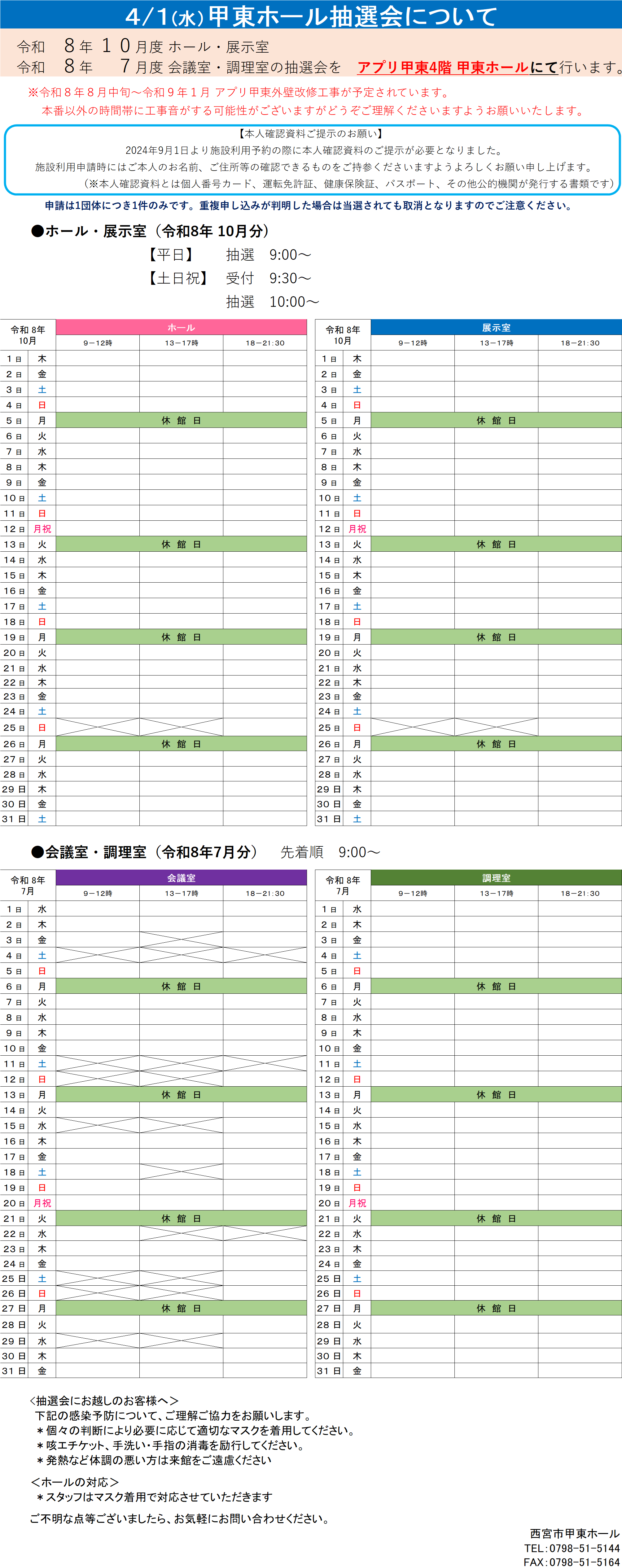 絵画・書道・手芸等の創作活動の発表の場として、団体展、グループ展及び個展に利用できます。間仕切りを動かすことにより、いろいろな展示方法が可能です。用途いろいろ展示室